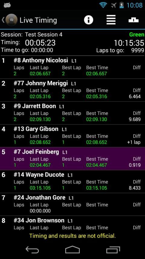 Dengan waktu hidup Ras Monitor, Anda dapat melihat waktu lap pembalap karena mereka terjadi, kelompok pembalap berdasarkan kategori (jika beberapa kelas berlomba pada saat yang sama), dan urutkan berdasarkan ras posisi atau posisi kualifikasi.