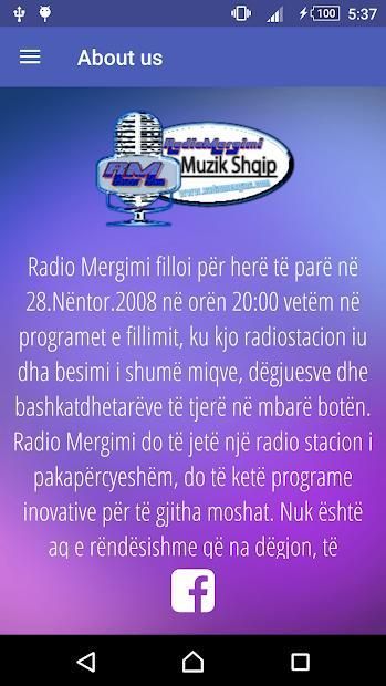 Muzika saya E përzgjedhur dhe autentike shqiptare. Me Radio Mergimi ju jeni argëtuar saya lehtësi dhe Më Prane atdheut tuaj. radio Kjo transmetohet vetem perms lidhjes SE për internetit momentin, edhe beratnya hanya melakukan të në transmetojmë edhe valet dixhitale tokësore nga partnerët Tane.