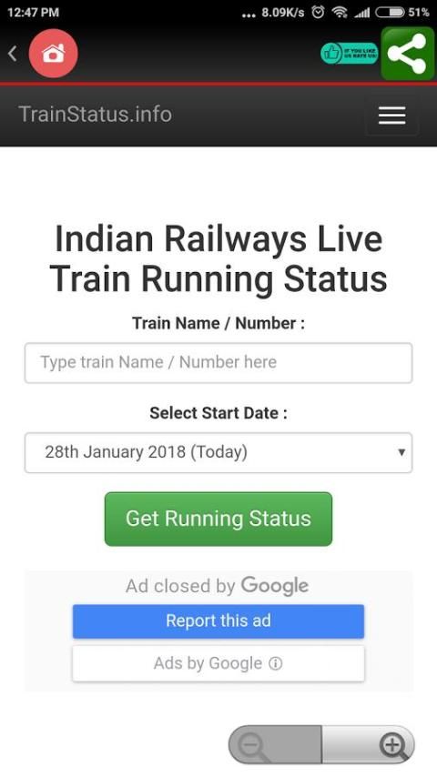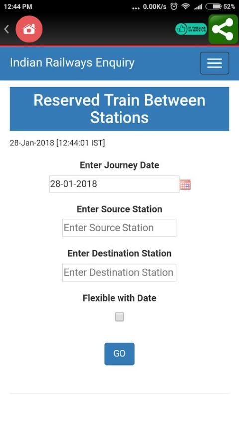 Indian Railways aplikasi resmi untuk wisatawan menggunakan kereta api untuk mengambil perjalanan liburan liburan, perjalanan dinas, wisata, dan perjalanan sehari-hari. Situs menyediakan terkait dan real-time query Status kereta berjalan untuk semua kereta dari India.
