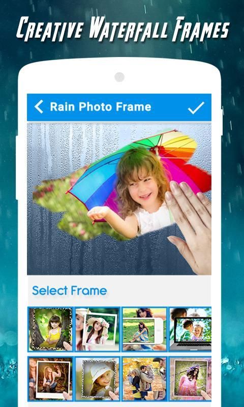 bingkai hujan Photo adalah aplikasi bagus yang memungkinkan Anda menyesuaikan foto Anda. Pilih foto dari galeri atau mengambil dengan kamera perangkat Anda, pilih bingkai dan menghasilkan foto Anda.