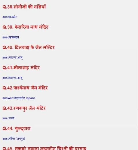 Rajasthan Pengetahuan Umum 10000 Pertanyaan Plus dan Jawaban dalam bahasa Hindi.