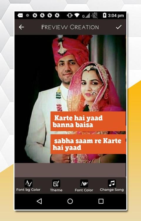 Create and share lovely Rajasthani Music video within a minute with your personalized. create your own music video with your personalized photos and texts. just pick your images and select best lyrics and you are done with awesome video. You can share it on your social sides as your story status every day.