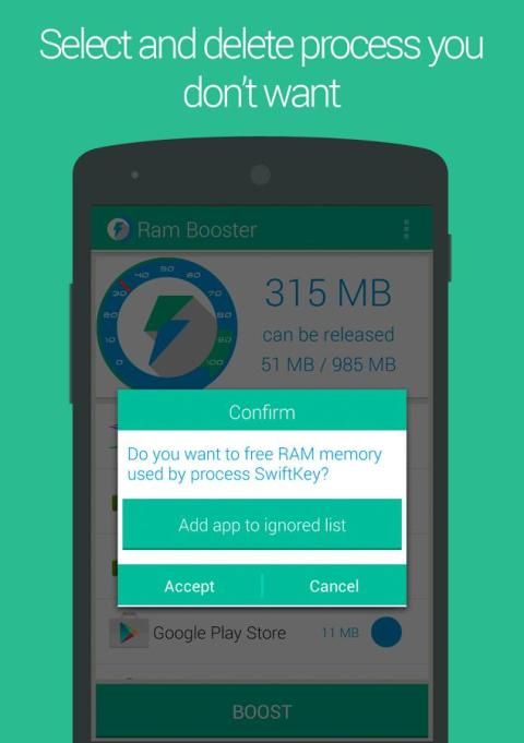 - Meningkatkan Auto memungkinkan penguat memori untuk berjalan di latar belakang dan secara otomatis kembali memori untuk Android Anda pada interval.