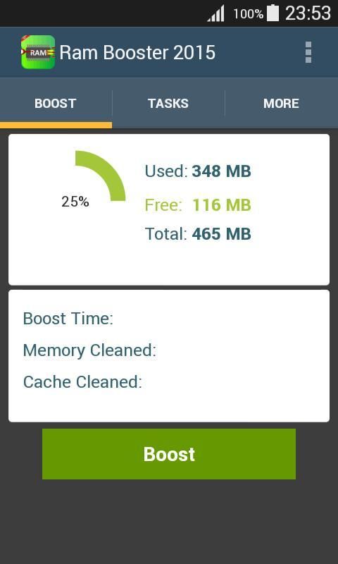 RAM Booster 2015 adalah Android app untuk membuat telepon Anda lebih cepat. Jika Anda memiliki pengalaman dengan lambat merespons ketika Anda menikmati permainan, menonton video atau tugas apapun. Anda dapat menggunakan RAM Booster 2015 app untuk memecahkan masalah Anda, aplikasi ini akan mencoba untuk menghapus cache, tugas-tugas yang bersih dan mengoptimalkan untuk membuat telepon Anda lebih cepat.