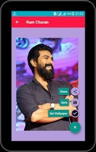 4. Anda dapat menyimpan atau Bagi "wallpaper dari Ram Charan" untuk Facebook, Twitter, Google + OR Instagram.