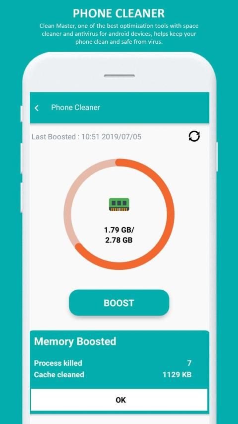 The most beautiful part of this app is a small, configurable widget that places on top of any app and one-click to RAM boost.