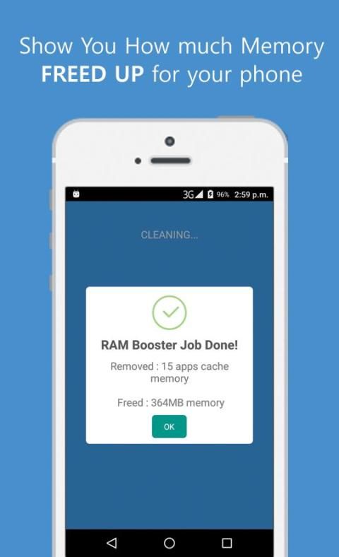 Setelah Anda menekan tombol bersih, Anda akan harus menunggu selama beberapa detik saat RAM Cleaner akan melakukan tugasnya. Adalah memori cleaner aplikasi yang baik? Ya, karena akan memberikan Anda dengan nilai maksimal dan hasil yang bagus di tempat yang adalah apa yang penting yang paling pada akhirnya. Nilai yang Anda dapatkan di sini adalah luar biasa dan Anda akan dapat memanfaatkan itu di tempat.