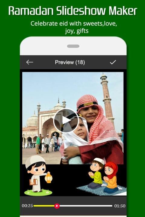 Buat film menakjubkan dengan foto, musik dan animasi menakjubkan pembuat effects.Ramadan slideshow memberikan efek animasi yang bagus, suara yang telah ditetapkan untuk memberikan efek yang lebih baik.