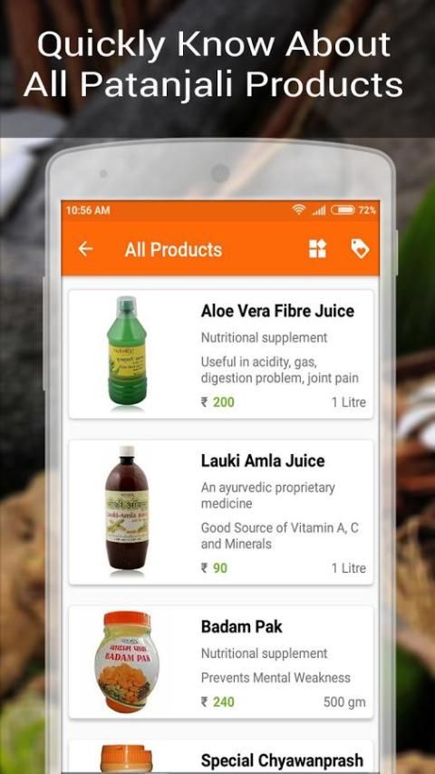 Aplikasi ini memberikan Anda informasi rinci dari semua produk dari Patanjali Ayurveda. Anda dapat memeriksa rincian dan manfaat dari setiap produk dari aplikasi ini. Ini juga membantu Anda untuk menempatkan pesanan online untuk produk ini dari mana saja dan kapan saja. Semua Produk yang Patanjali tersedia di sini. Mendownload aplikasi untuk membeli produk Patanjali langsung melalui ponsel Anda.