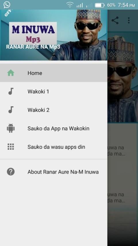 Wannan Manhaja ta Kunshi wakokin cikin Kundin Ranar Aure Na da wasu zababbu kuma fitattun wakokin M Inuwa. Wannan aplikasi anyi shi ne don jin dadin ku tara da fadada yaduwar harshen Hausa sebuah Duniya. Wakokin da Ke cikin Wannan Manhaja matahari hada da: