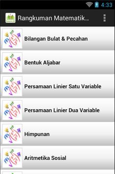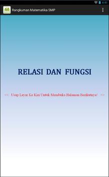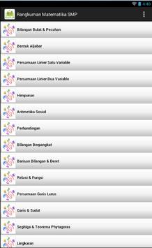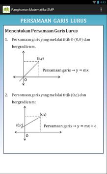 Rangkuman Matematika SMP ini merupakan aplikasi yang memuat uraian-uraian ringkas beserta rumus-rumus matematika untuk pelajar SMP.