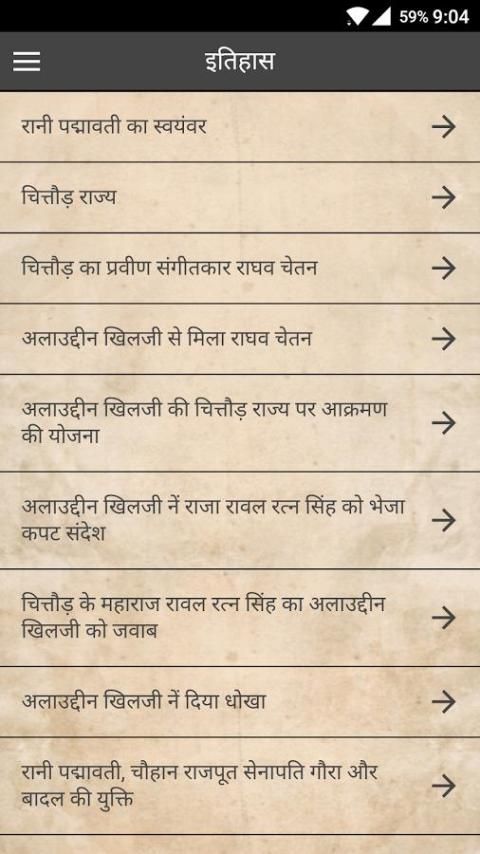 Rani Padmawati aplikasi dalam bahasa hindi dan berisi: