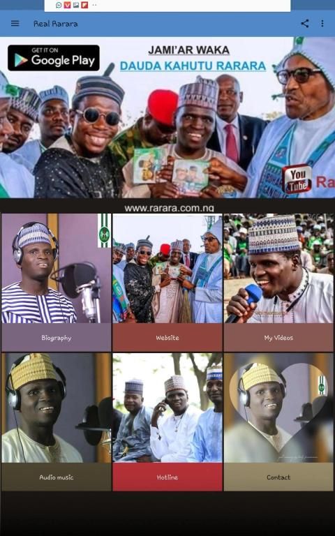 Wannan Manhaja ce tamusamman na fitaccen mawakin nan wato DAUDA KAHUTU RARARA, Ta manhajar zaka iya ji, saukar ko kallon kowane irin wakar sa kai tsaye ta cikin manhajar