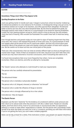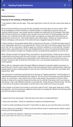 In this app, you’ll learn how to bring a courtroom state of mind—clear-eyed, observant, careful, and objective—into the emotional, subjective drama that is everyday life. Master the following skills, and you’ll be ready to read people.