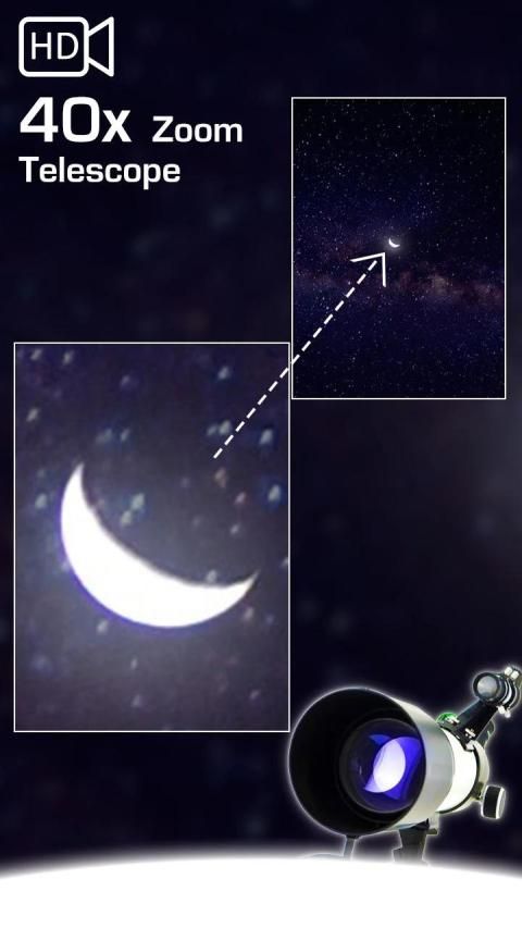 Karena algoritma canggih dan stabilisasi gambar yang diintegrasikan ke dalam aplikasi, aplikasi ini memungkinkan Anda untuk mengambil gambar Supermoon, gerhana bulan, dan tampilan ruang lainnya yang indah. Ambil gambar awan, langit, bulan, matahari, bintang, puncak bukit, cakrawala, dan objek jauh lainnya. Zoom teks dan objek kecil dan ambil gambar yang diperbesar HD.