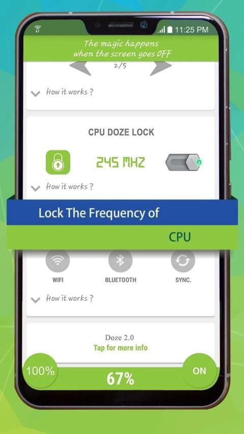 CPU adalah "otak android" yang secara konstan menghitung banyak tugas yang menuntut seperti memperbarui aplikasi, widget, dan memeriksa pembaruan perangkat lunak. Tugas komputasi ini menghabiskan banyak baterai. Pengaturan ini mengunci CPU hingga frekuensi serendah mungkin memastikan penghematan baterai yang sangat besar dan peningkatan kinerja.