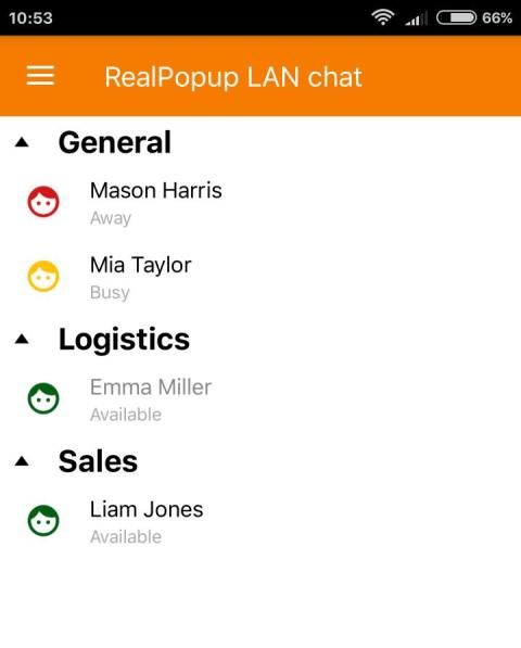instant messaging client untuk chatting di jaringan lokal. Mendukung koneksi Wi-Fi dan tidak memerlukan dedicated server untuk menjalankan. Versi Android berlaku untuk berkomunikasi antara Windows dan Mac versi klien RealPopup IM.