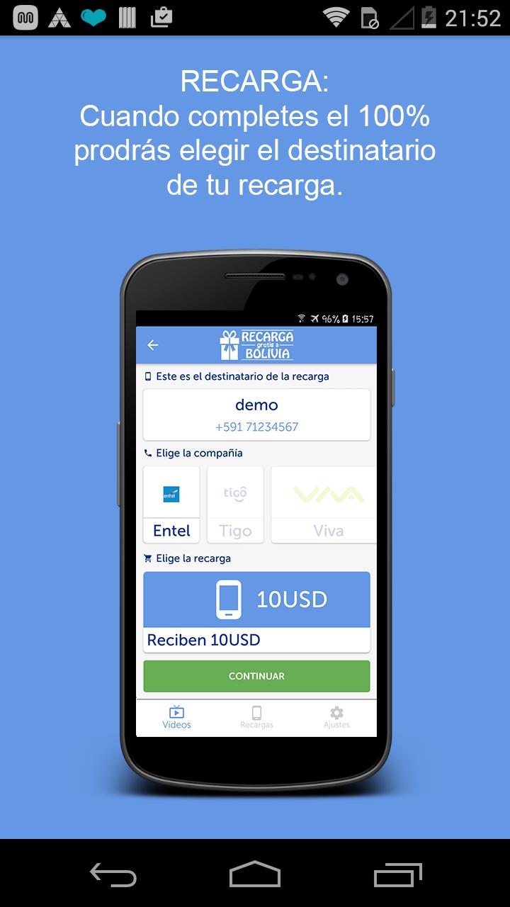 Esta aplicación de RECARGAS GRATUITAS a Bolivia te permite recargar GRATIS cualquiera de los operadores que existen en Bolivia: