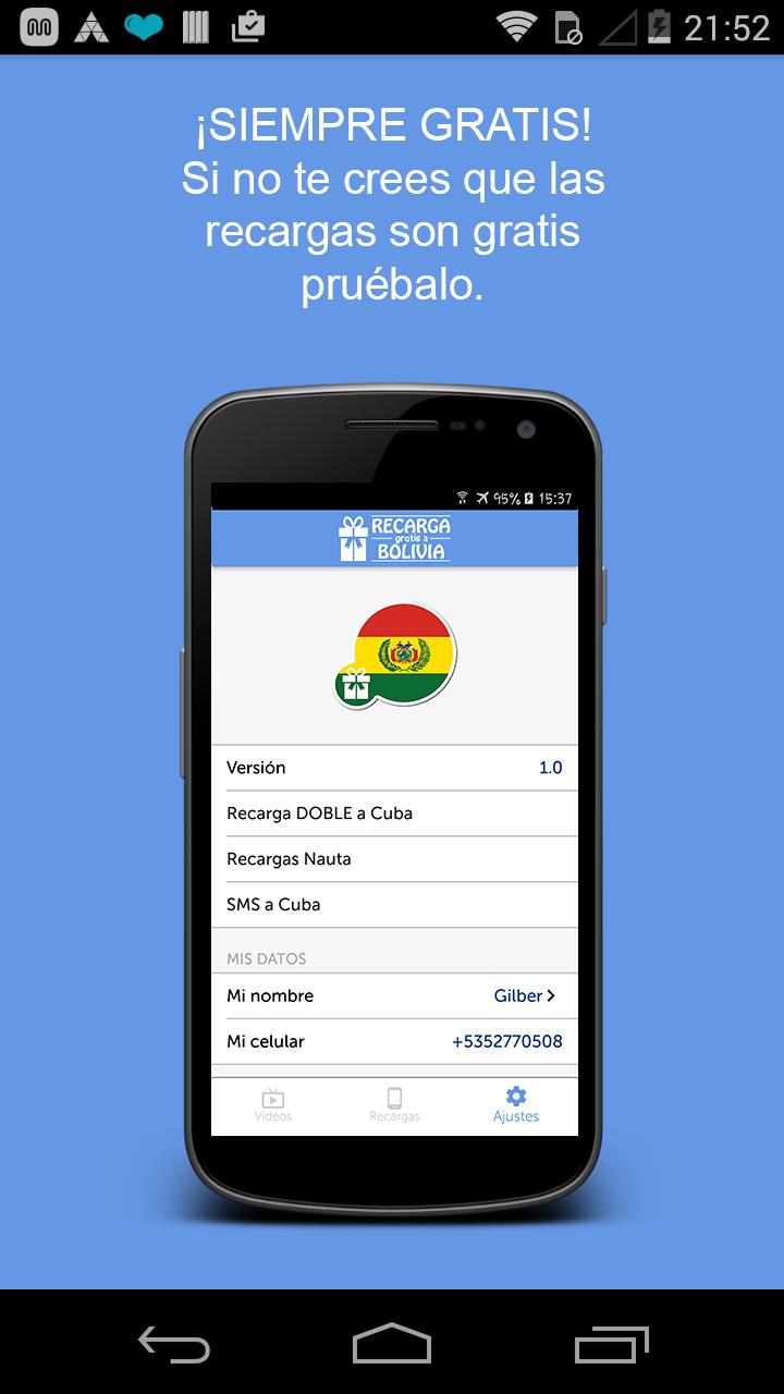 • Esta aplicación de RECARGAS GRATUITAS a Bolivia tiene la garantía de https://www.recargadobleacuba.com,