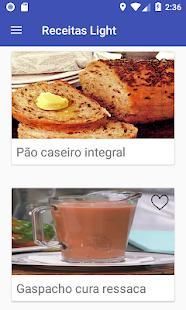 Lista das receitas de light do aplicativo: