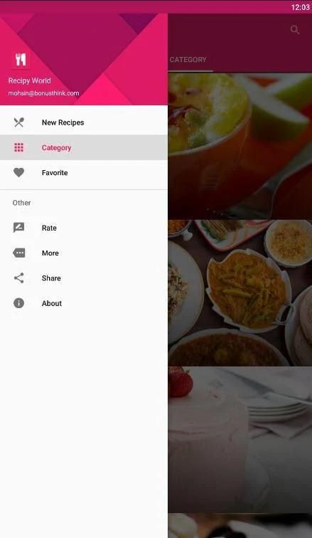 "Recipy world" mengumpulkan resep dari blog dan situs web chef papan atas. Desain navigasi sederhana dengan koleksi resep yang sangat banyak mulai dari masakan India hingga internasional di seluruh dunia !.