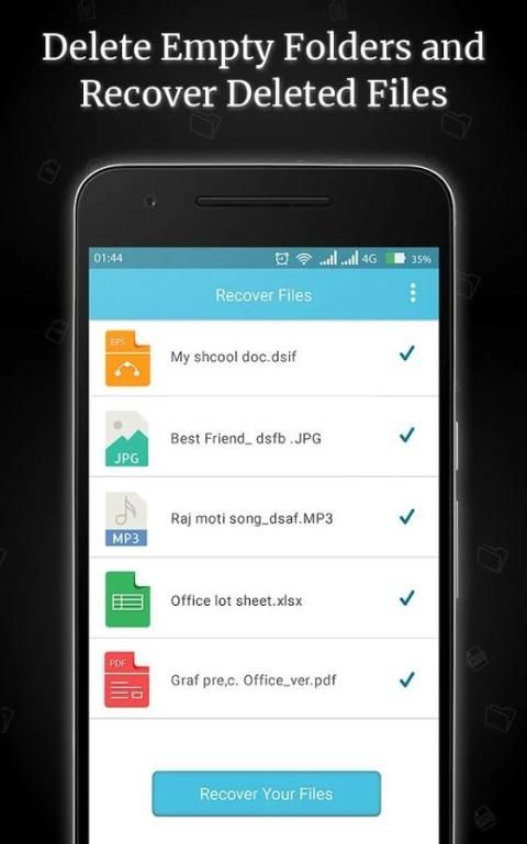 Scan aplikasi dan memungkinkan Anda untuk menghapus folder kosong. Anda dapat menghapus semua folder pada satu waktu atau pilih folder untuk menghapus satu per satu. Sebuah aplikasi untuk memulihkan foto dihapus dari penyimpanan ponsel Anda atau dari penyimpanan eksternal, dan mengembalikan mereka ke galeri Anda.