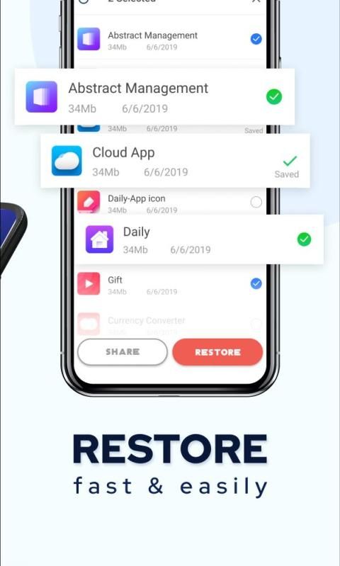 Access each and every application install with the Restore Pro: App Backup & Easy Backup Apk app, whether it's a system app or a user app or an sd card app - all in one place, only with a few clicks. Use as a professional Recover deleted files & back-up app.