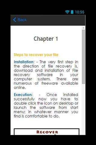 Note:-This Is Content - Only App. It gives you information regarding recovery of deleted file.