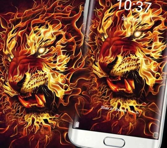 Dapatkan cerah dan indah Ponsel Interface dengan Red Fire Singa Tema.