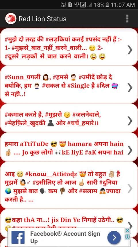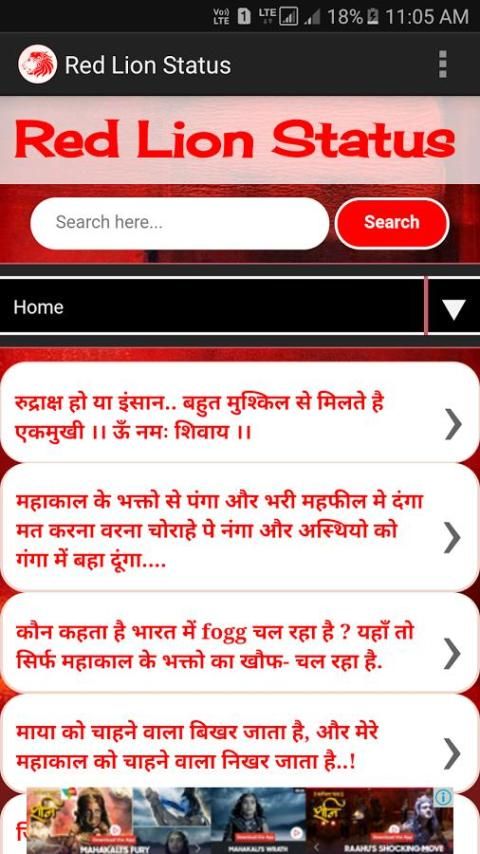 Red Lion Status benar-benar gratis dan Best Aplikasi Status Hindi untuk Semua Orang yang suka mengatur Status Terbaik dan Hindi Quotes di Facebook, Whatsapp dan media sosial lainnya.