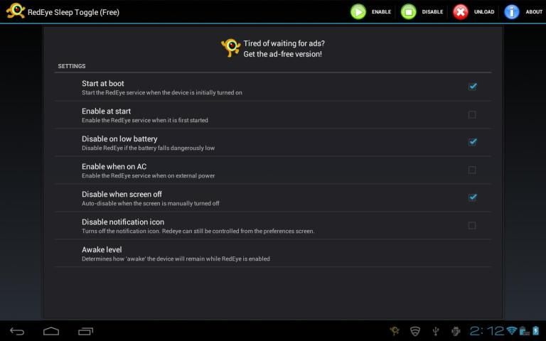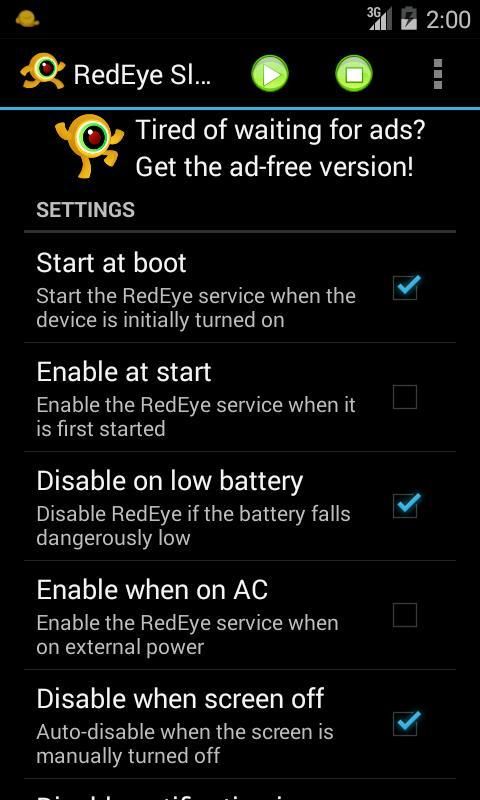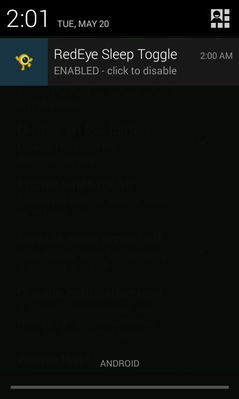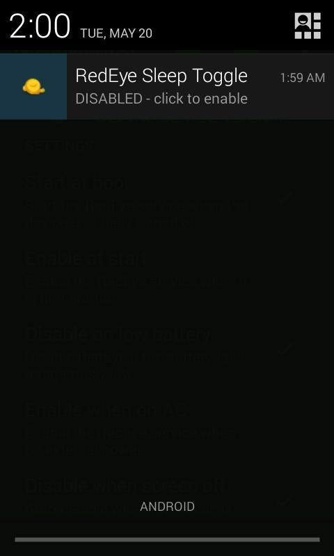 Mata merah memungkinkan ponsel atau tablet untuk tetap terjaga dengan mencegah dari pergi ke modus tidur tanpa aplikasi apapun juga berjalan. Hal ini memungkinkan Anda untuk dengan cepat dan mudah mengaktifkan & off mode sleep otomatis tanpa harus menggali melalui menu konfigurasi.