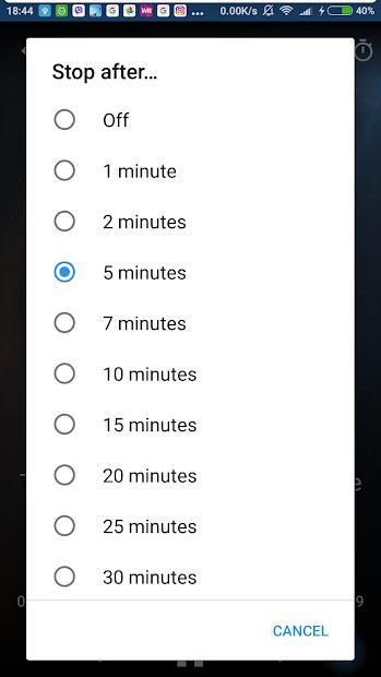 Aplikasi ini memiliki timer, Anda dapat mengatur dan pergi tidur, musik akan berhenti secara otomatis.