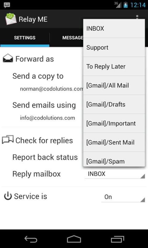 Tidak seperti banyak aplikasi sejenis lainnya, teks Anda langsung ke server email dan tidak ada perantara yang terlibat dalam menangani mereka. Email juga dikirim melalui koneksi SMTP aman dan aman ke server email Anda (dan yang disurvei melalui koneksi IMAP aman). Relay ME tidak pernah meminta informasi rahasia, termasuk password Anda.