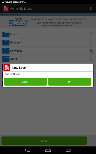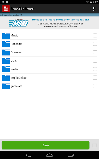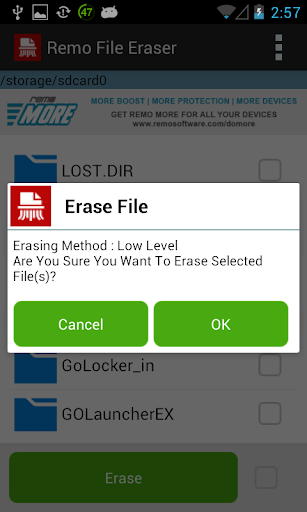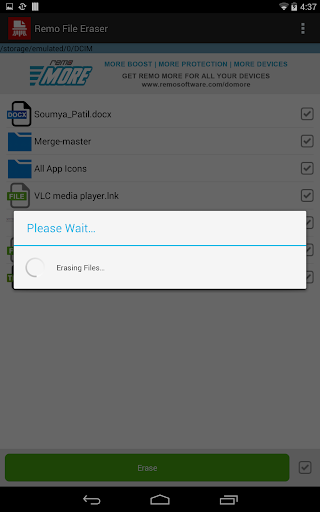 aplikasi penghapus file remo akan dengan aman menghapus semua file dan folder sensitif Anda selamanya dari memori internal dan eksternal untuk ponsel Android Anda dan tablet Anda Gratis !!