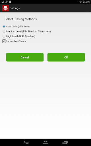 Menghapus file atau memformat memori internal atau memori eksternal (kartu SD) tidak akan menghapus file sensitif Anda sepenuhnya. Ini dihapus dapat dipulihkan menggunakan perangkat lunak pemulihan data apa pun. Untuk menghapus data di luar pemulihan, memanfaatkan penghapus file remo.