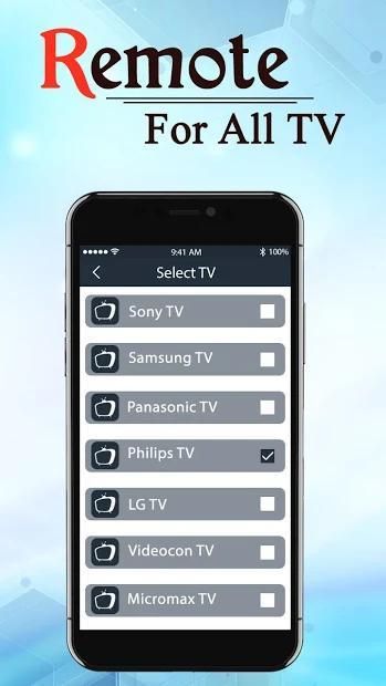 TV Remote For All Tv sangat mudah dikonfigurasi untuk televisi Anda dan sangat mudah digunakan. The Tv Remote Untuk Semua aplikasi Tv memungkinkan Anda untuk mengalami remote TV nyata seperti pengalaman saat menggunakan aplikasi. Aplikasi kami mendukung sebagian besar merek dan model TV. Apakah Anda memiliki TV Samsung, LG TV, Sony TV atau TV bermerek lainnya, Anda selalu dapat mengkonversi perangkat android Anda ke remote untuk TV Anda.