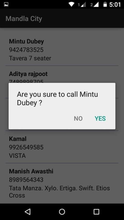 Call button added to the list itself to call directly.