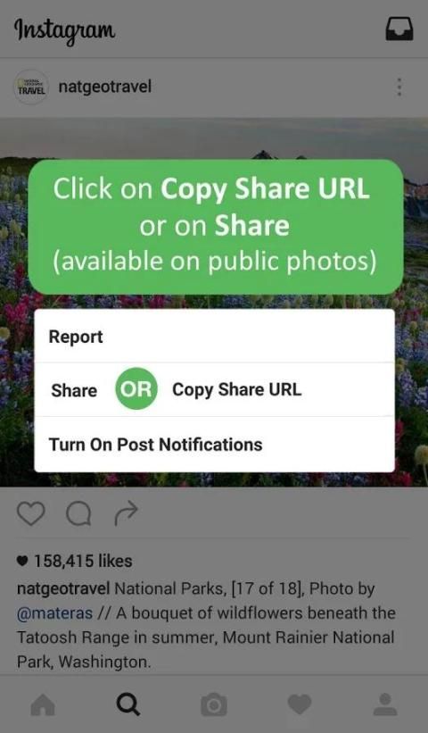 Anda tinggal di Instagram dan klik pada tiga titik, copy url atau saham, dan kemudian aplikasi akan muncul.