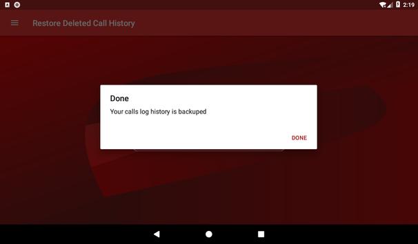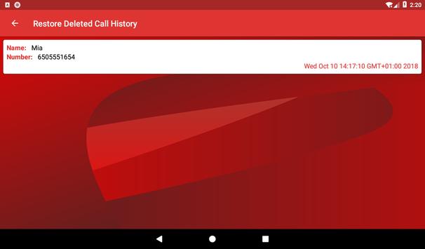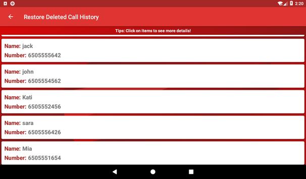 Apakah Anda mencari alat yang berguna untuk memungkinkan Anda memulihkan riwayat log panggilan yang dihapus? Anda berada di aplikasi yang tepat, dengan menggunakan aplikasi kami Anda dapat memulihkan riwayat panggilan yang dihapus hanya dengan satu klik! Anda tidak akan takut kehilangan nomor kontak penting Anda lagi, aplikasi kami akan setiap hari mencadangkan semua riwayat log panggilan Anda secara otomatis dari ponsel Anda dan juga kartu sim Anda untuk menjauhkan Anda dari kehilangan nomor kontak penting Anda, Anda juga dapat mengatur pilihan Anda waktu cadangan dengan mudah.