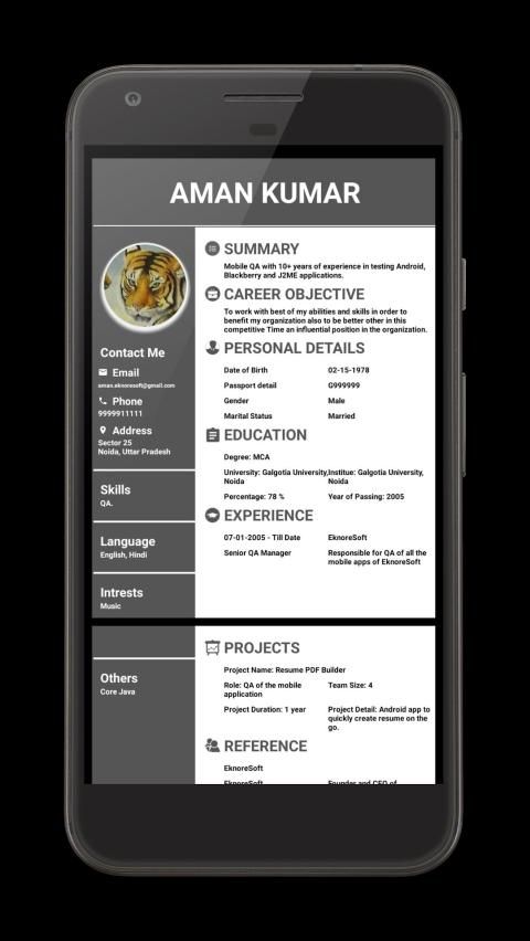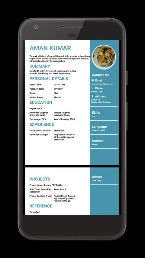 Aplikasi ini dapat digunakan untuk membuat / membuat Resume, Curriculum vitae, profesional melanjutkan template, sampel CV, lamaran Editor.