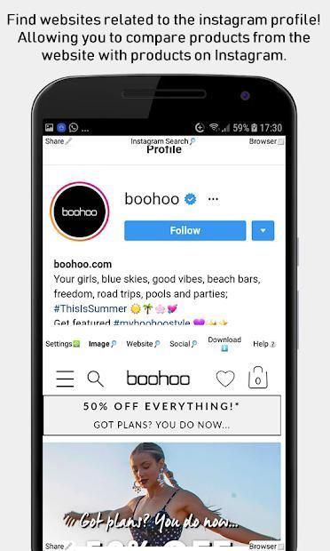 Find websites related to the IG profile. Allowing you to make direct comparisons between the products on the IG page and the products on the website.