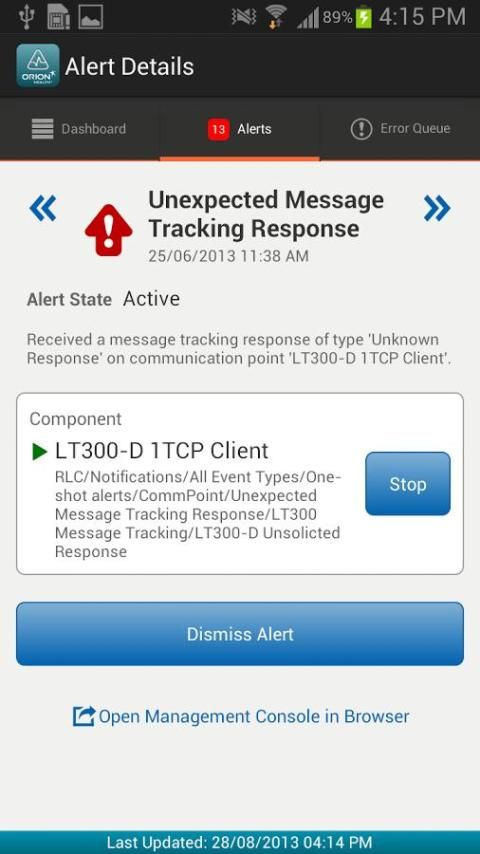 * Integrasi dengan pemberitahuan Rhapsody. Email peringatan Personalized dapat dikonfigurasi dalam Management Console Rhapsody dengan link untuk membuka masing-masing rincian waspada dalam aplikasi.