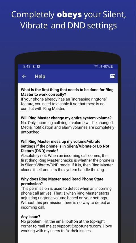 Apakah Ring Master akan mengacaukan pengaturan volume / getar saya jika ponsel dalam mode Senyap / Getar atau Jangan Ganggu (DND)?