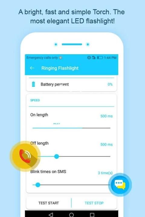 Gratis indah aplikasi Dering Senter hanya akan memberitahu Anda tentang pesan sms panggilan dari utusan setiap dan semua pengguna diinstal aplikasi lain melalui senter mulai berkedip.