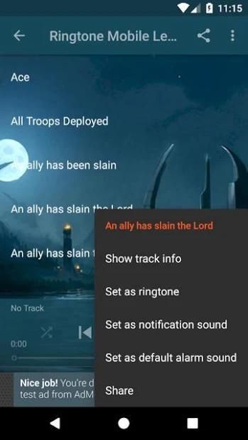 Instal aplikasi gratis lalu pilih nada yang Anda suka, klik untuk waktu yang lama kemudian muncul pemberitahuan pilih set nada dering, alarm atau nada sms