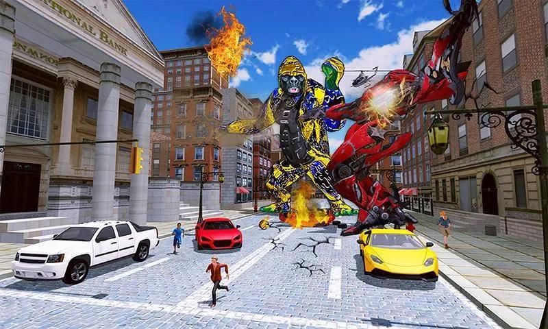 The wild animal battle where robot gorilla fight with the futuristic evil robot in this transforming robot fighting games and animal robot games. Play the best gorilla robot fighting game with futuristic alien robot transforming. The giant robot transformation game is becoming one of the best robot games in the world from flying robot games & US police transform robot game. Enjoy robot fighting games having crazy gorilla simulator which will fight with kaiju monster and Robots in this transforming robot fighting games and animal robot games with gorilla kong Rampage Attack. Play gorilla robo game with enemy robots lots of destruction and animal rampage all at one place. Play as a super robotic ape out on rampage whatever comes in way a huge skyscraper or some evil robots in this transforming robot games or best of robot transforming games called Robot Gorilla Games: Gorilla Robot Rampage Attack