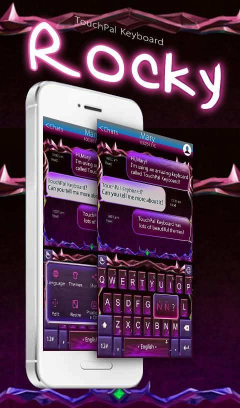 New Gratis TouchPal Rocky Keyboard tema akan membawa Keyboard & teks masukan tampilan baru nyata & merasa. Periksa desain pribadi GRATIS ini untuk Keyboard TouchPal Emoji Anda sekarang! Pergi dan mendapatkannya! Ratusan tema bebas dan indah, seperti Neon Biru Keyboard, Neon Keyboard ringan dan Rainbow Easter Egg Keyboard, Sexy Banana Keyboard, dll yang menunggu untuk Anda.