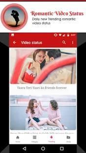Romantic video status app provide variety of lyrical videos status which you can directly post or share on social media app. Romantic video status for whatsapp is a free video status application having trending categories of videos.using this app its easy to express your mood by sharing photos and videos in social status.