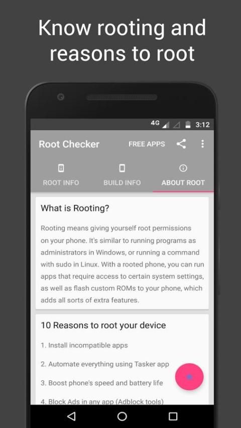Jika Anda bertanya seperti Mengapa saya harus membasmi perangkat saya ?, Apa yang rooting ?, aplikasi Akar Checker juga memiliki bagian untuk menjawab pertanyaan ini.