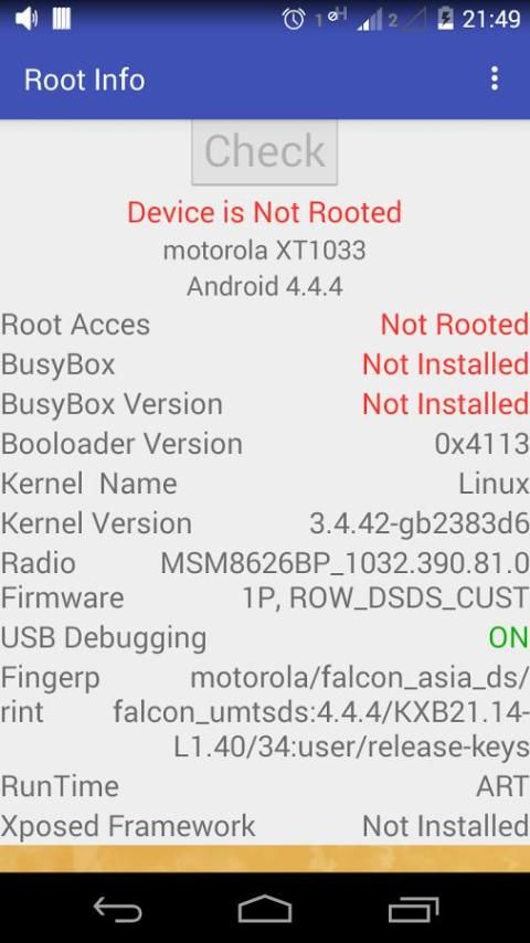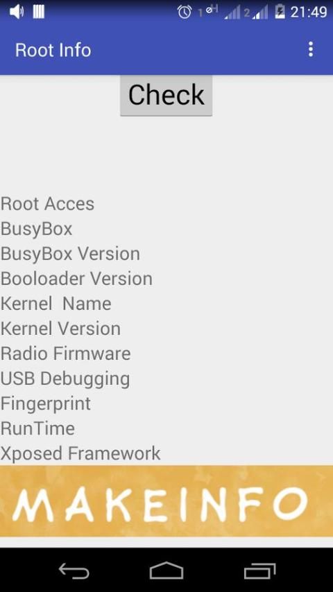 Some rooting process will only grant partial root permission.By using this Root Info,you will get to know if you successfully rooted or not and also gives more information for rooted device.This app is mainly designed for